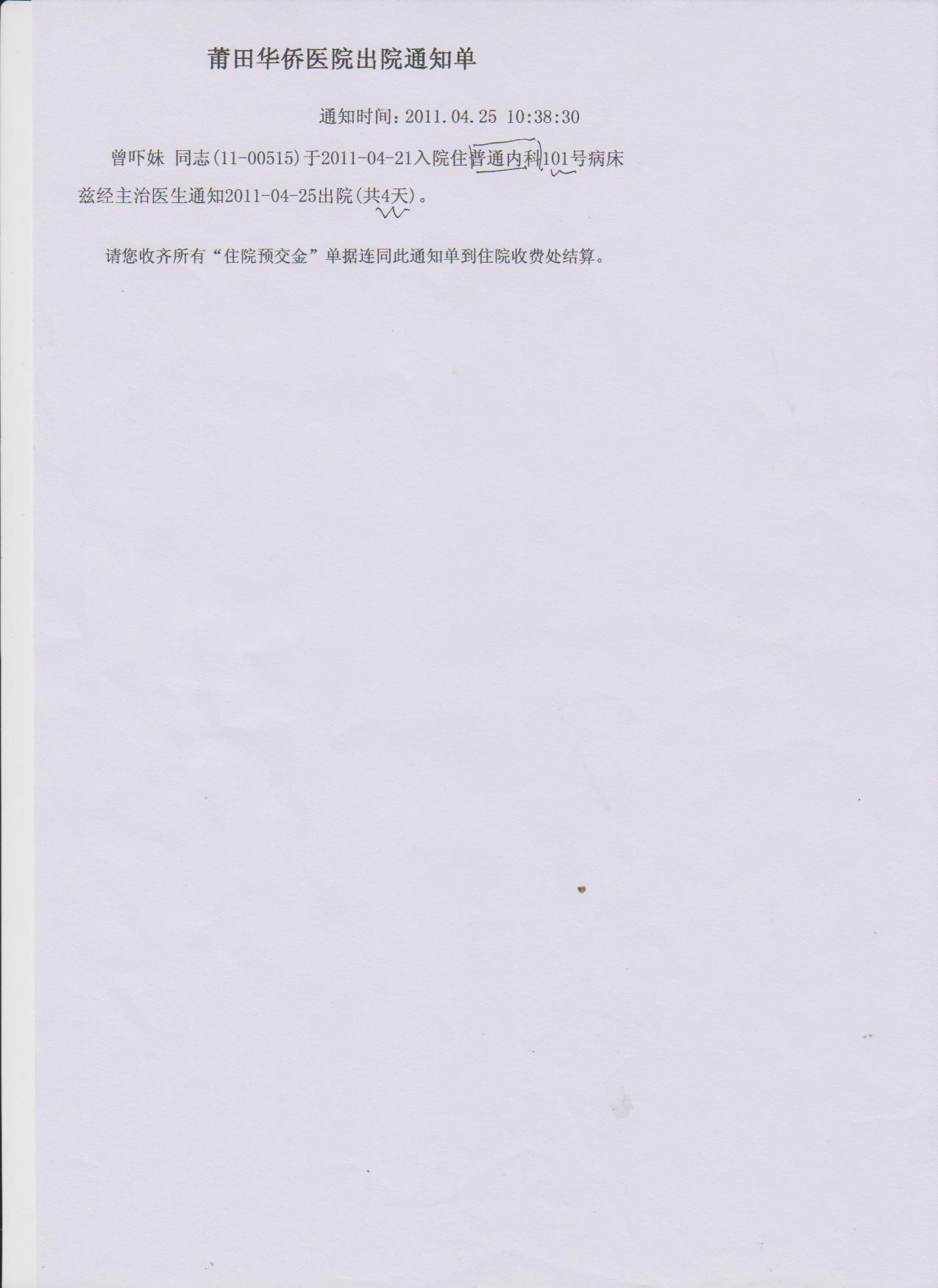 2011/4/25 10:59 113187 出院通知单.jpg