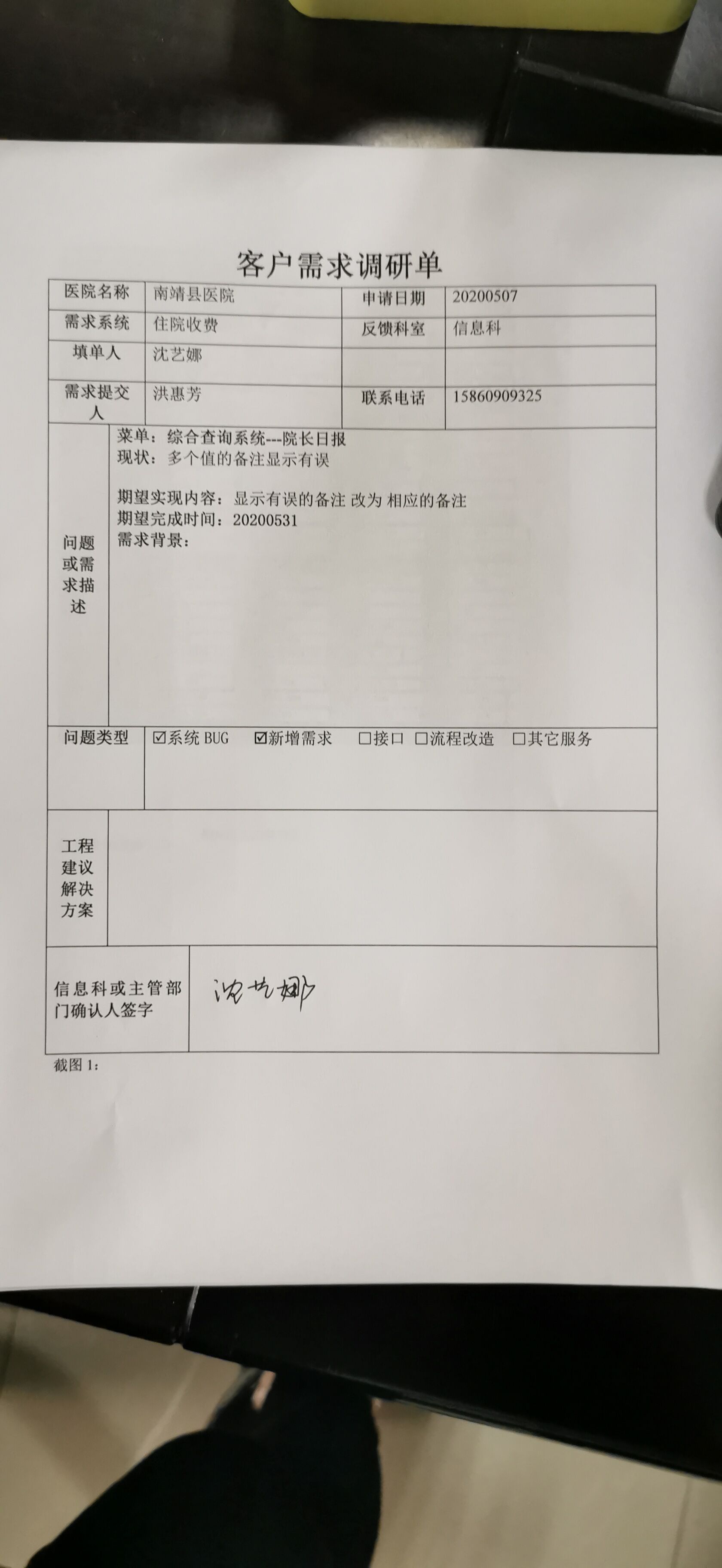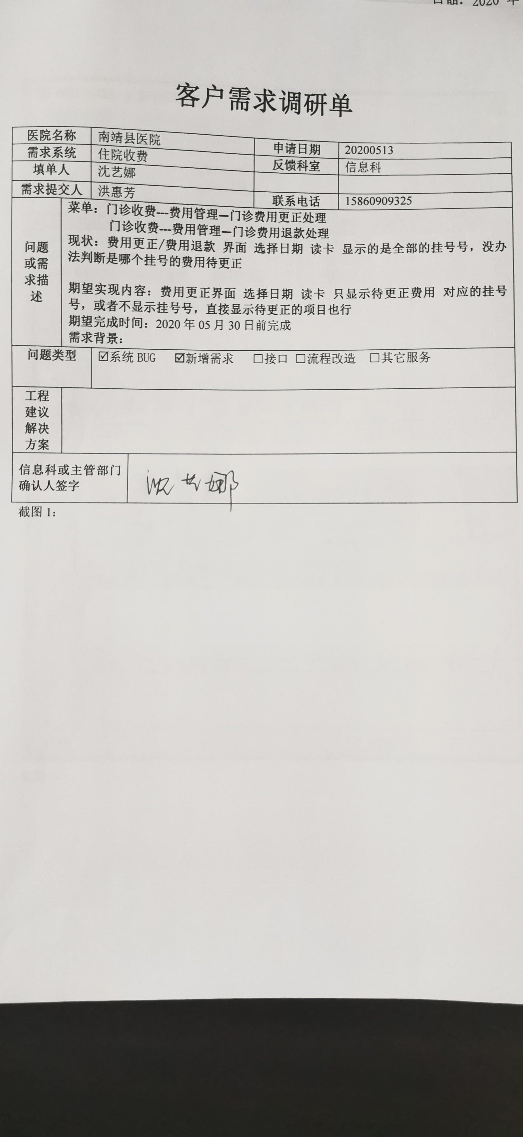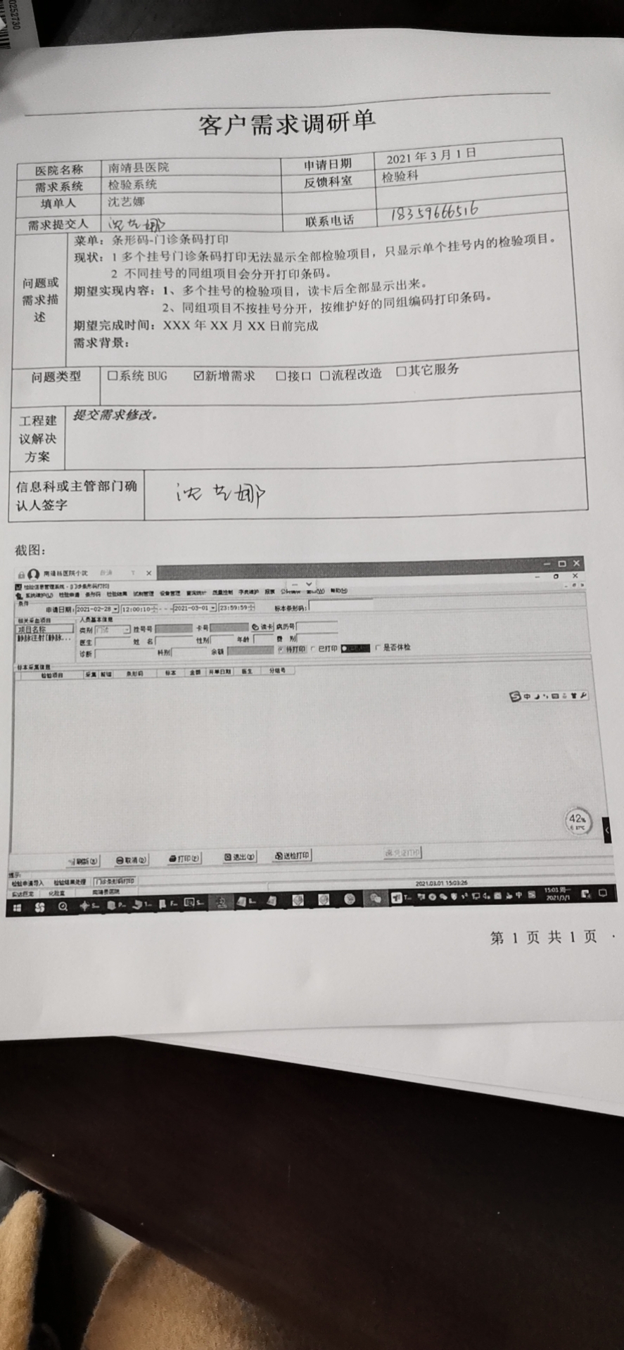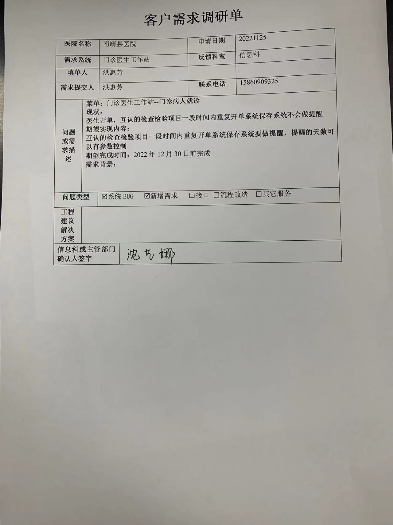 2021/3/1 15:16 266099 需求系统:客户需求调研单_南靖县医院1.docx