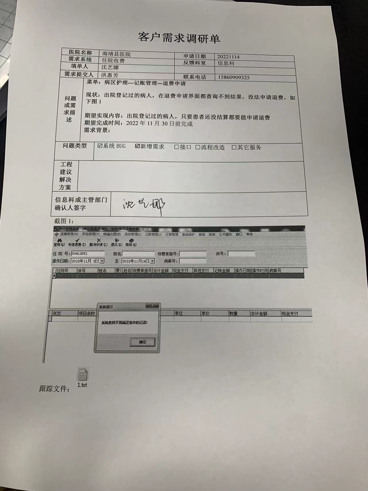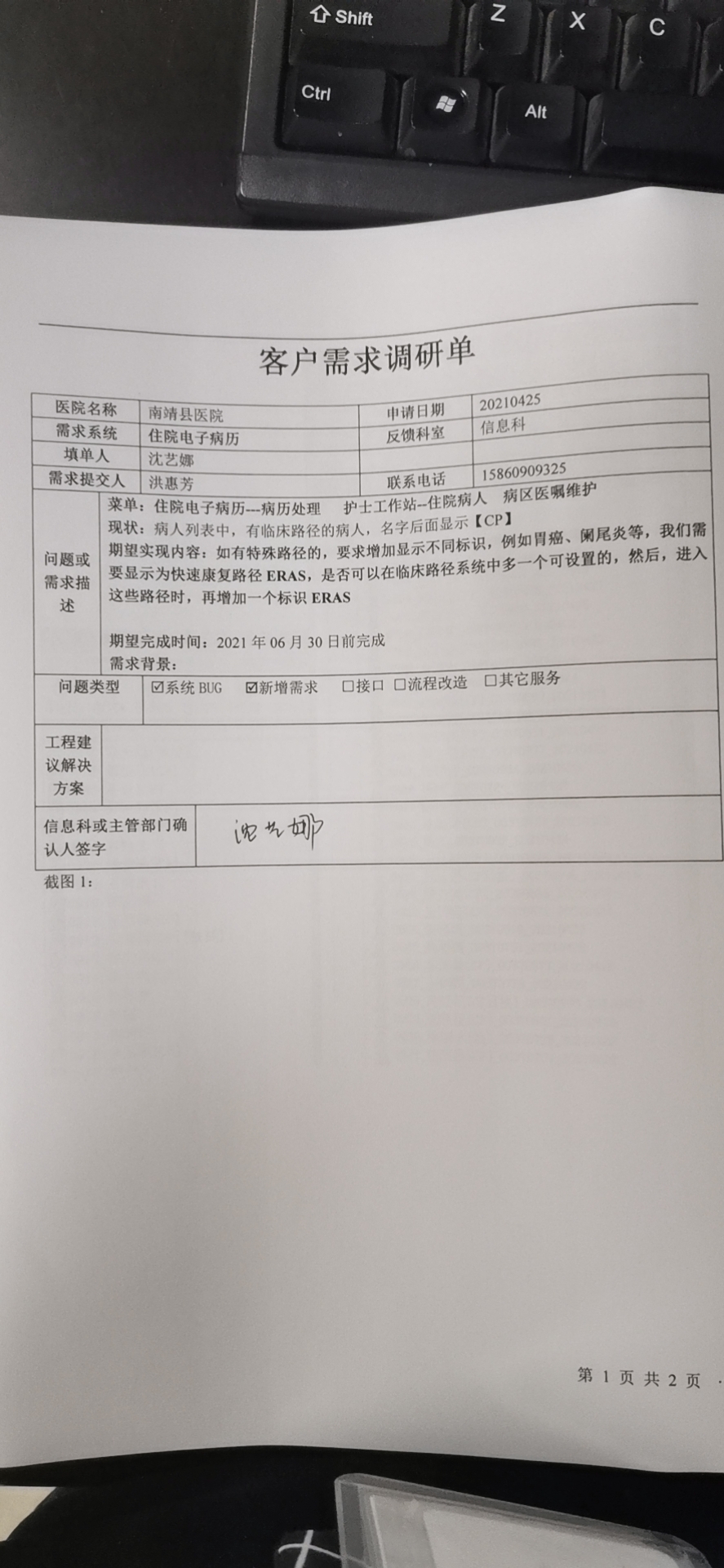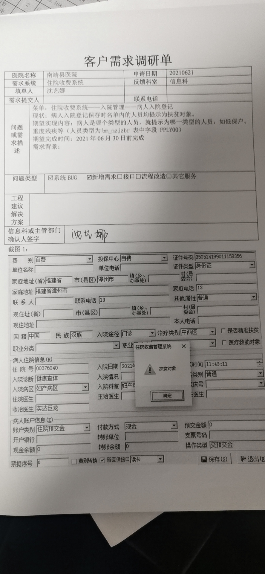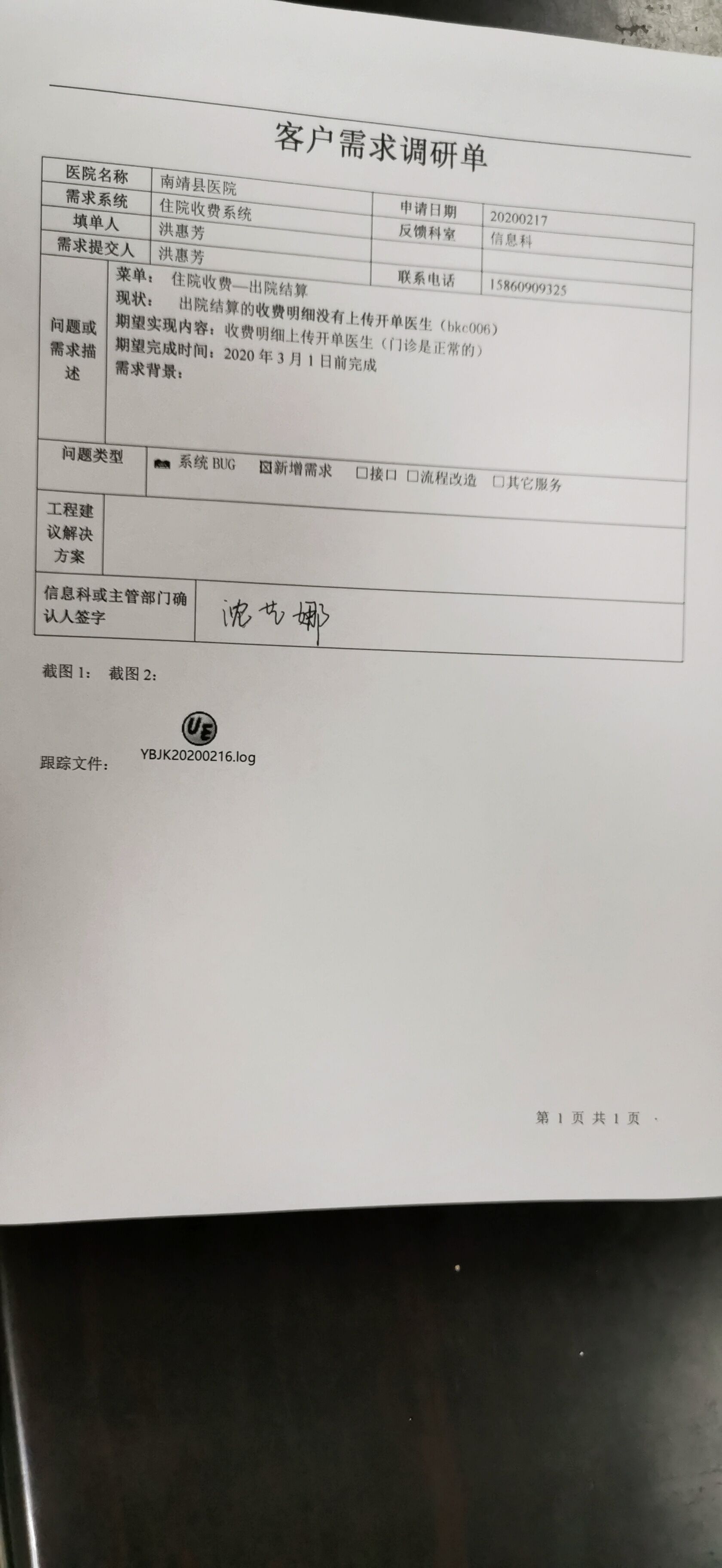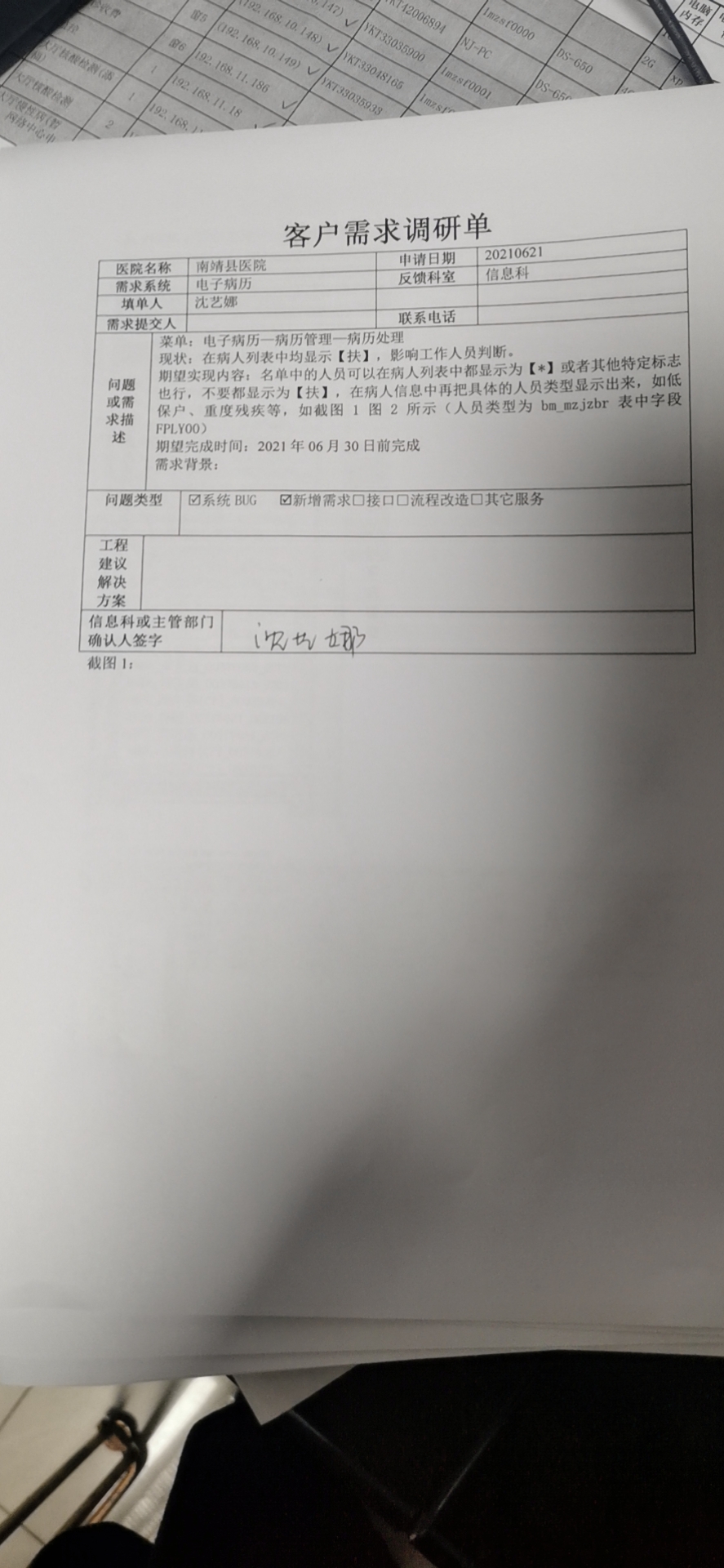 2021/3/1 15:16 266099 需求系统:客户需求调研单_南靖县医院1.docx