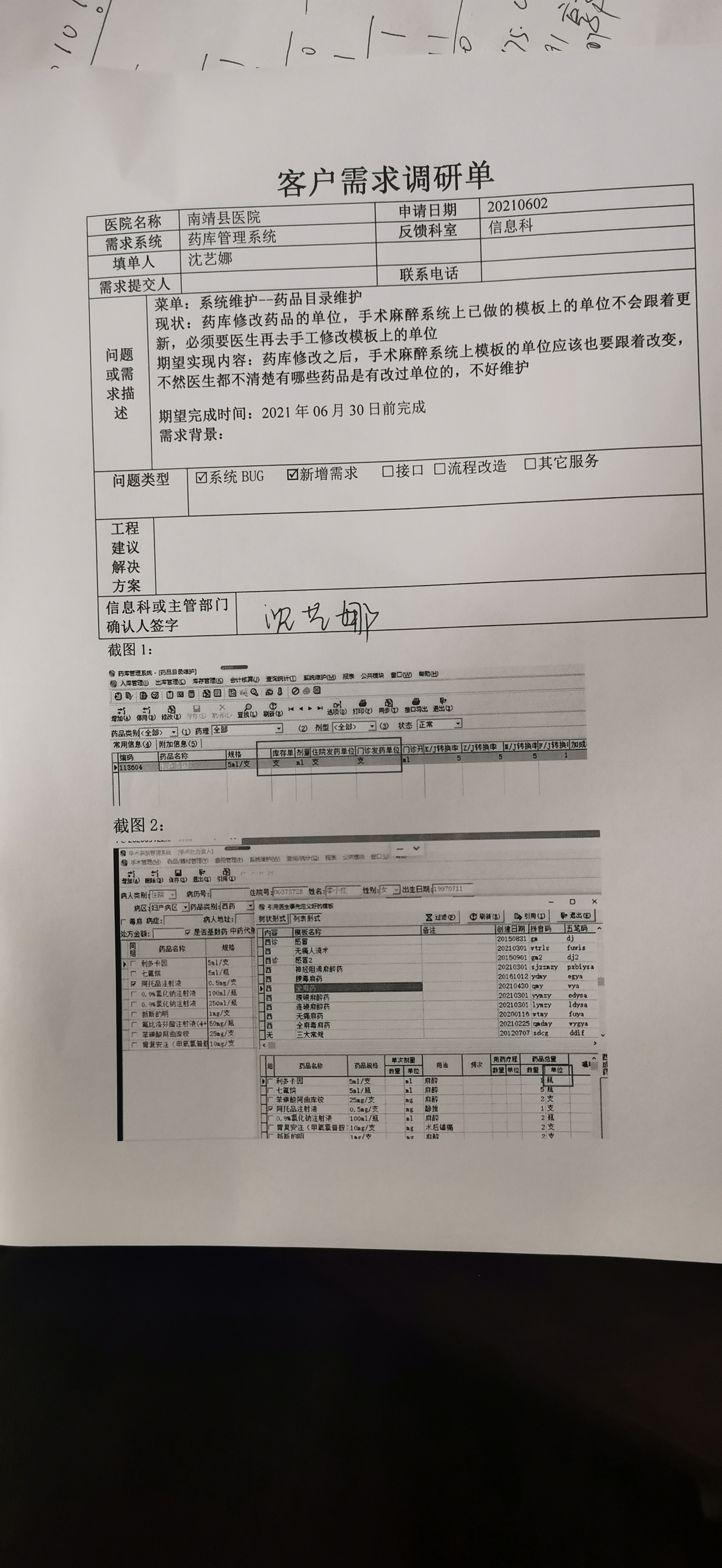 2021/6/2 16:01 402286 需求调研模板--药库改单位手术麻醉系统模板上单位不会自动更新.doc