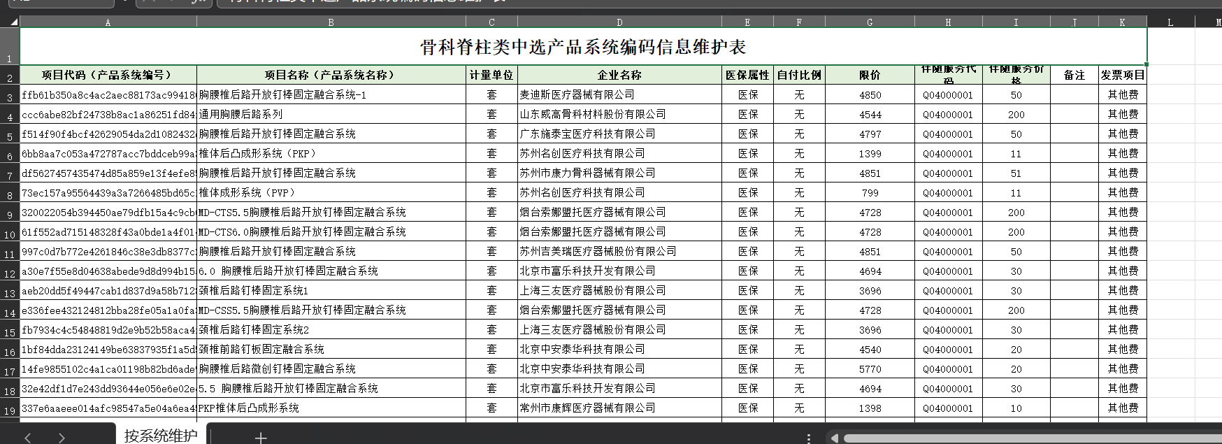 2023/5/8 11:50 627800 附件1.闽医保〔2023〕43号-骨科脊柱类中选产品系统编码信息维护表.xlsx