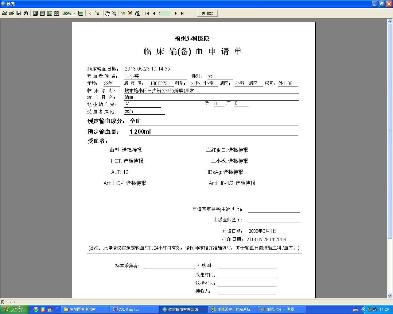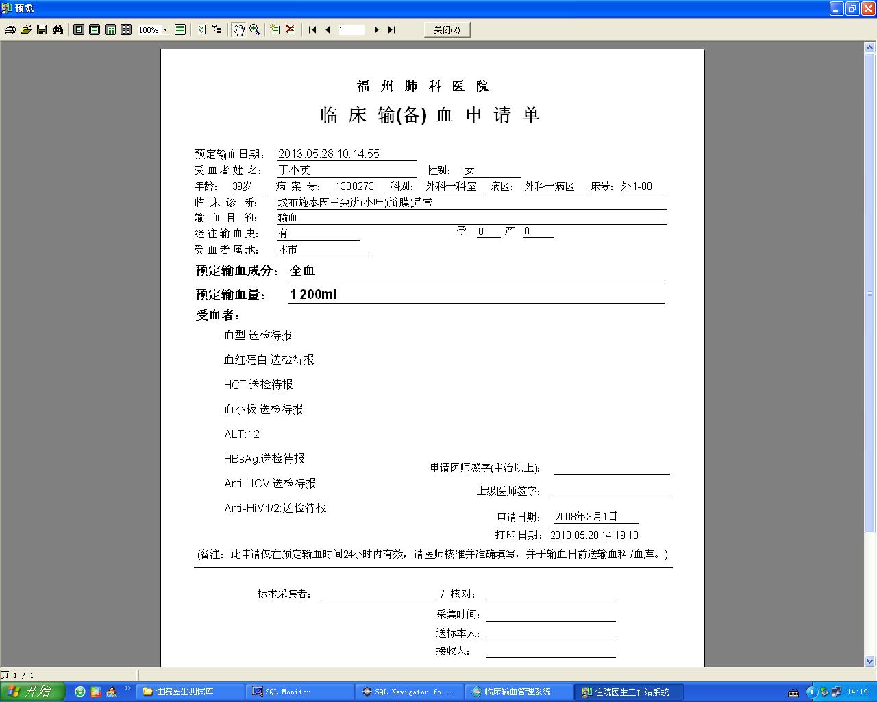 2013/5/23 8:48 15481 输血申请单.fr3