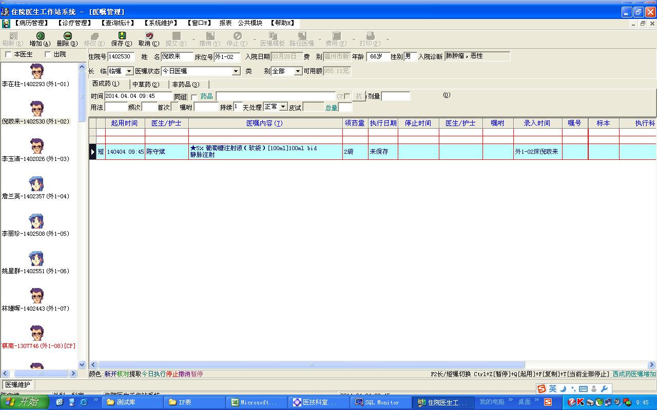 2011/12/5 10:05 32232 肺科医院输液卡格式-v2.SQL