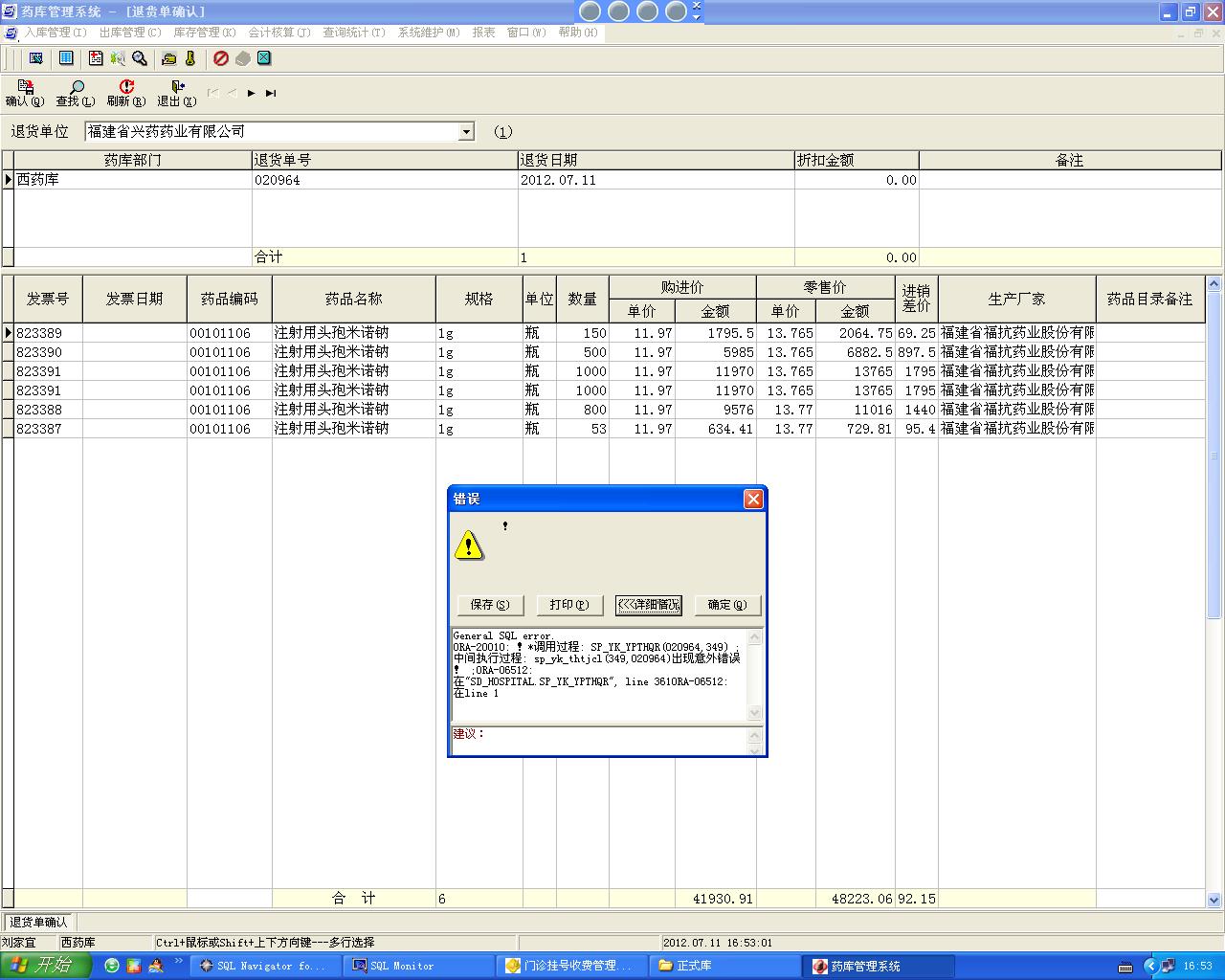 2012/7/11 17:29 192086 药库退货单确认报错.JPG