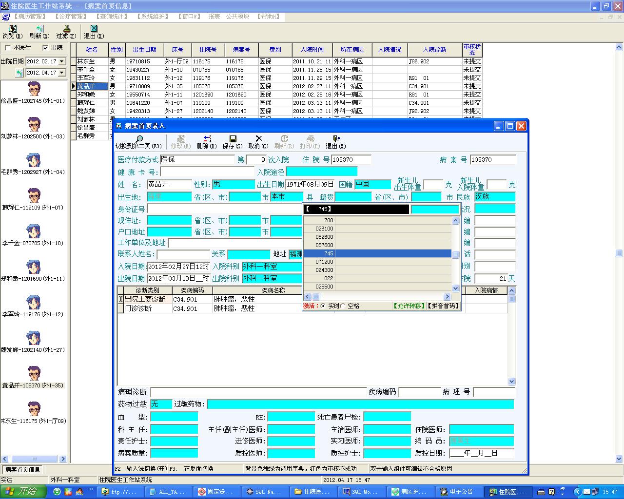 2016/1/7 11:31 850069 肺科病案首页增加 ‘损伤、中毒的外部原因’ 和 ‘疾病编码’这两项.JPG