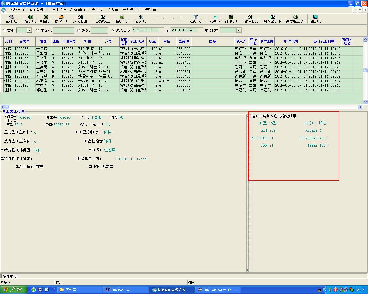 2019/12/4 8:31 7017 血库发血执行过程SP_XK_YWZX00.txt