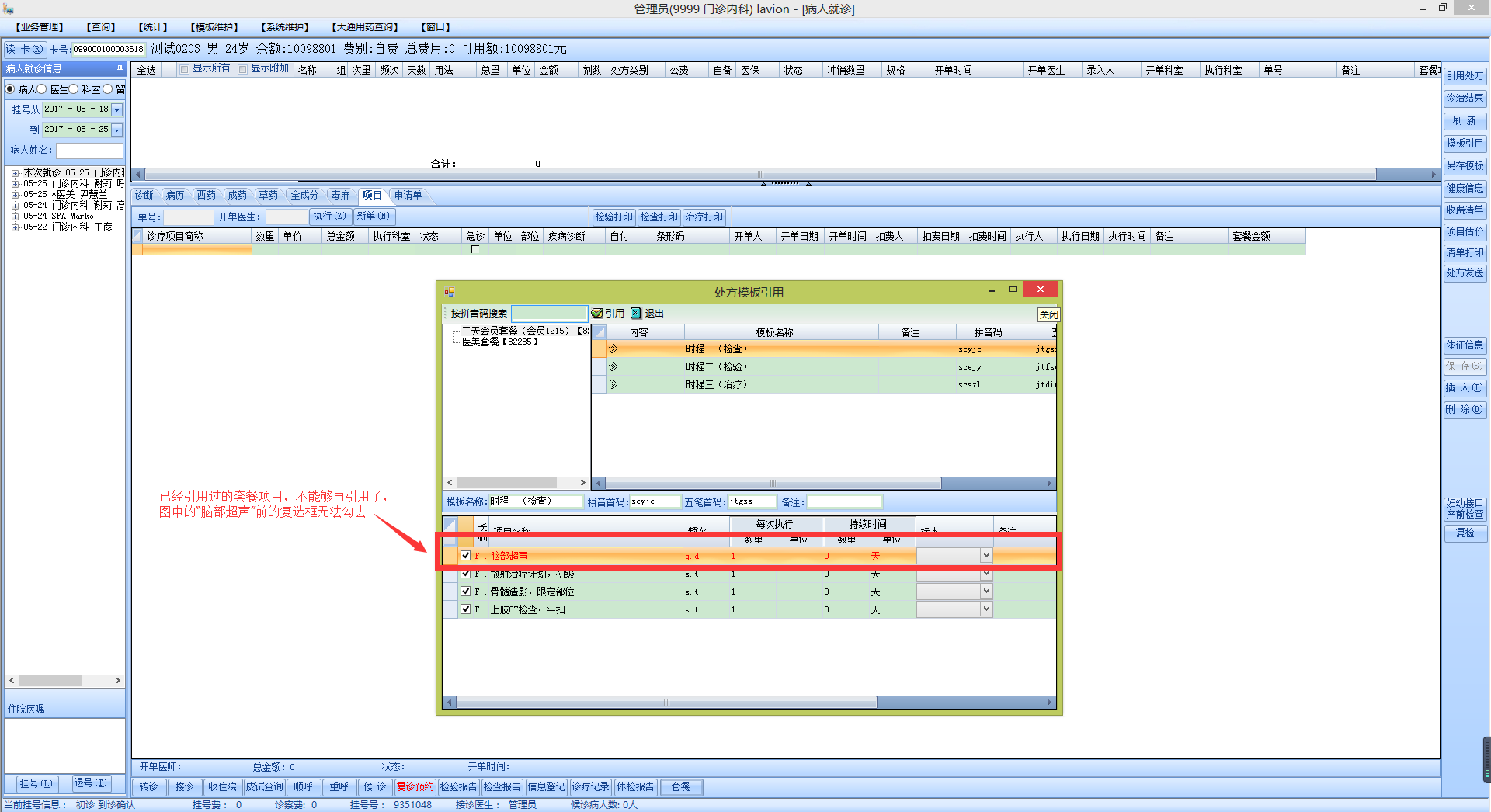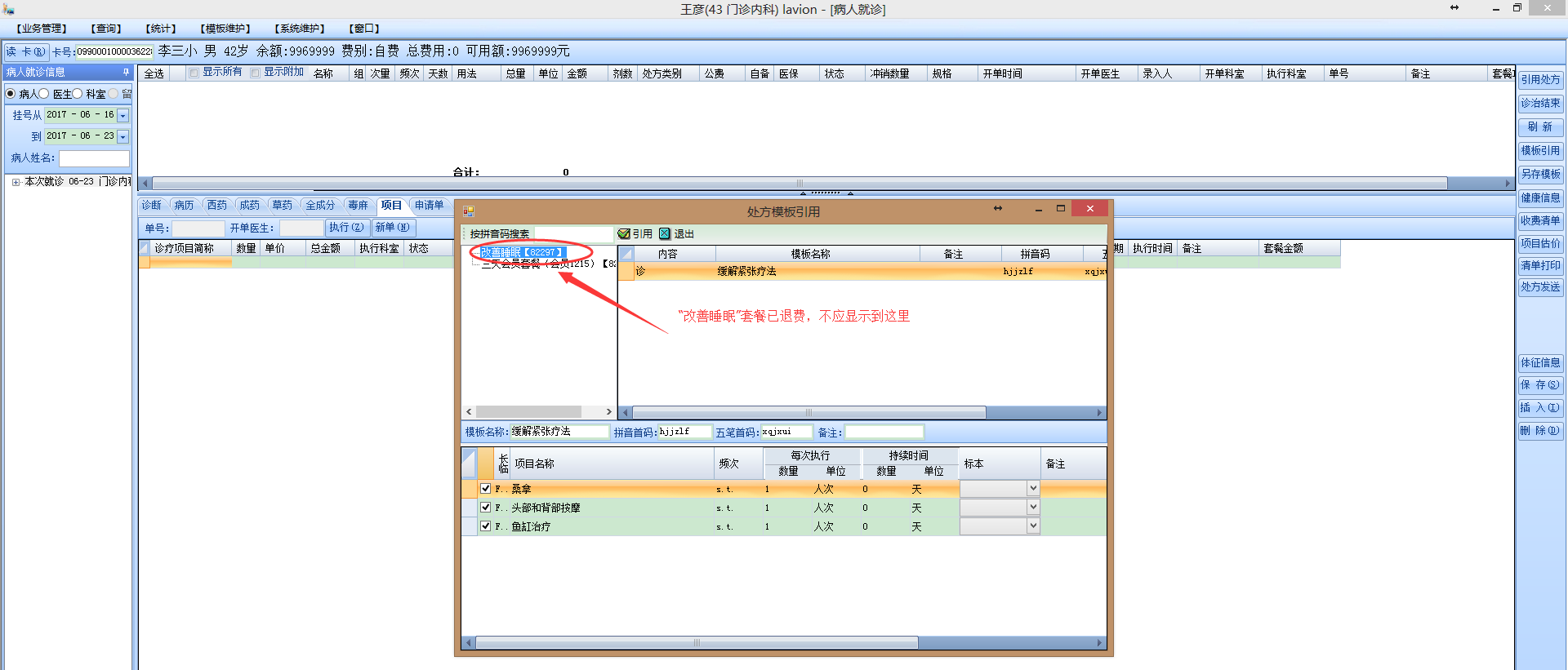 2017/6/25 22:17 91119 已取消的套餐在医生站也能够引用.png
