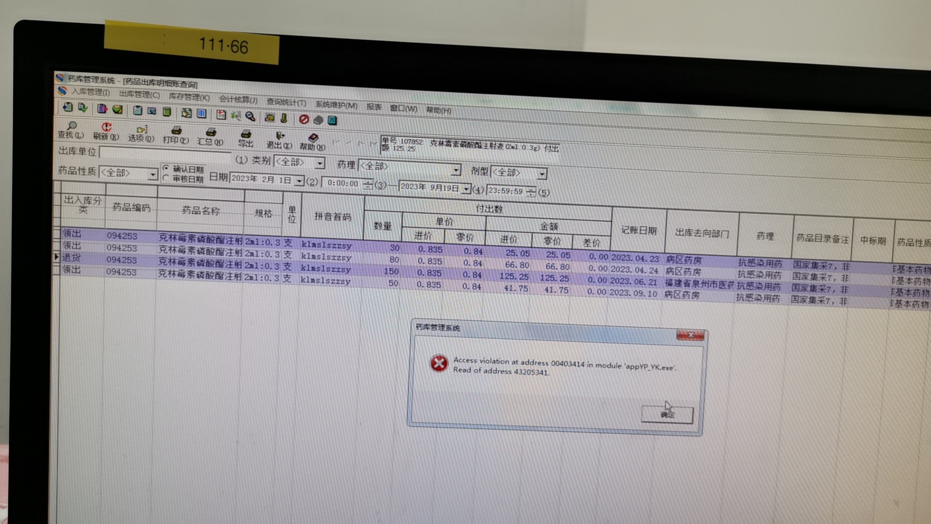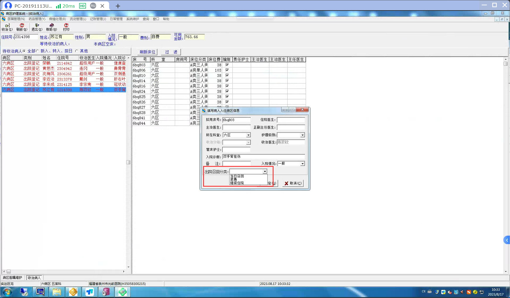 2023/10/20 16:14 6176 SP_YJ_ZLMBYY_SINGLE.prc