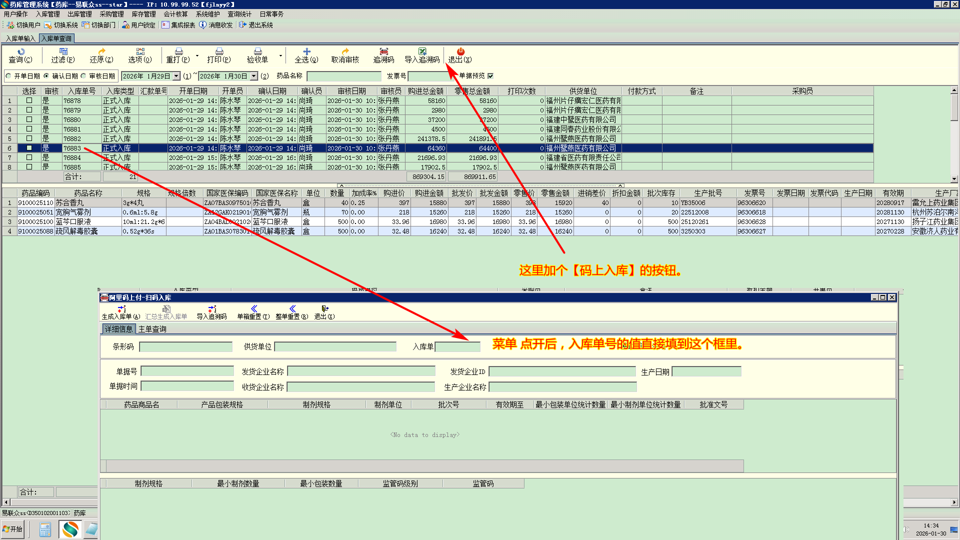 2026/2/2 17:59 249344 福建省老年医院--20260202--药库系统---码上放心接口增加入库单查询入口.doc