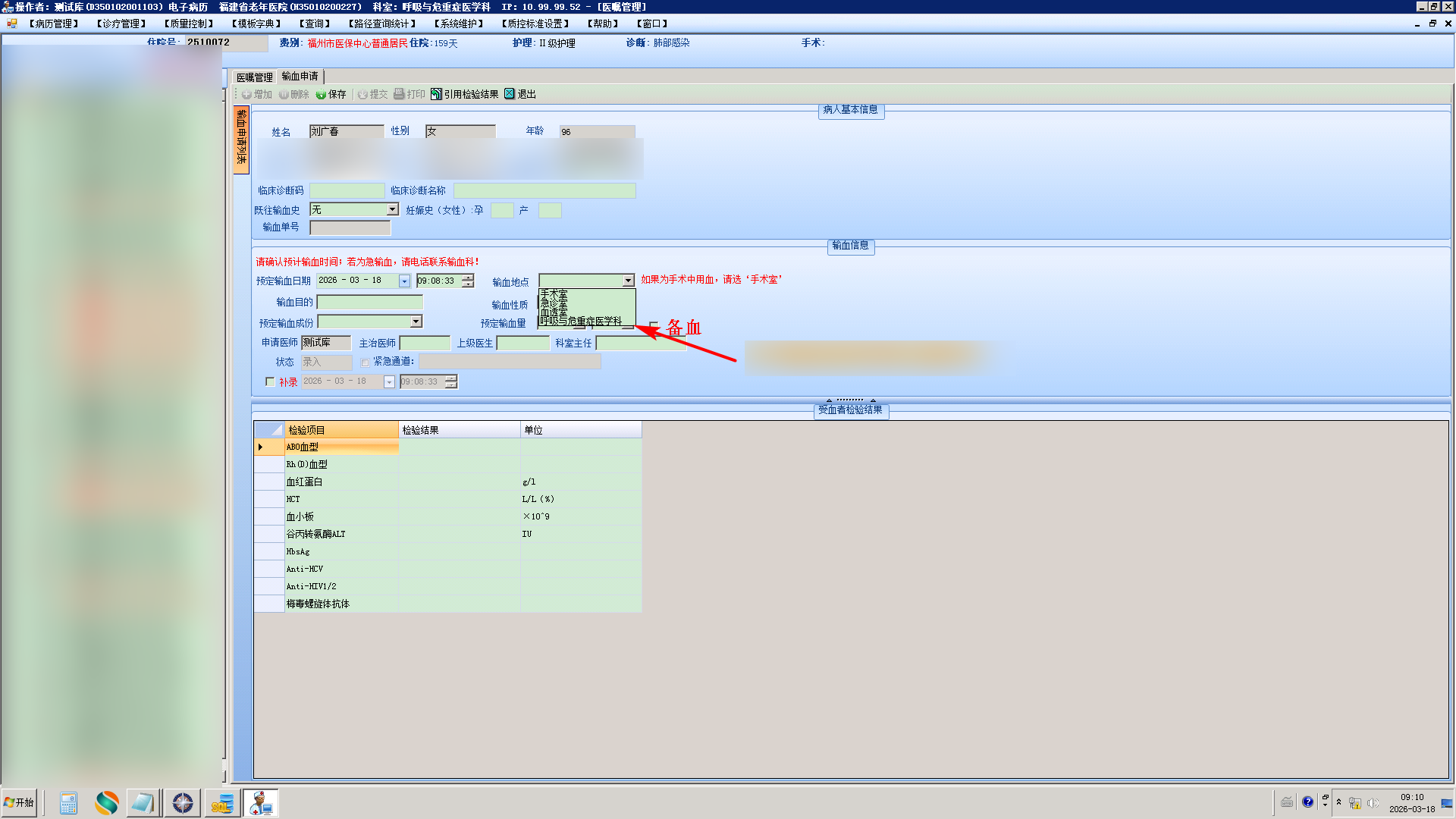 2026/3/18 10:52 445440 福建省老年医院--20260318--住院医生---输血申请加病区输血地点改造.doc