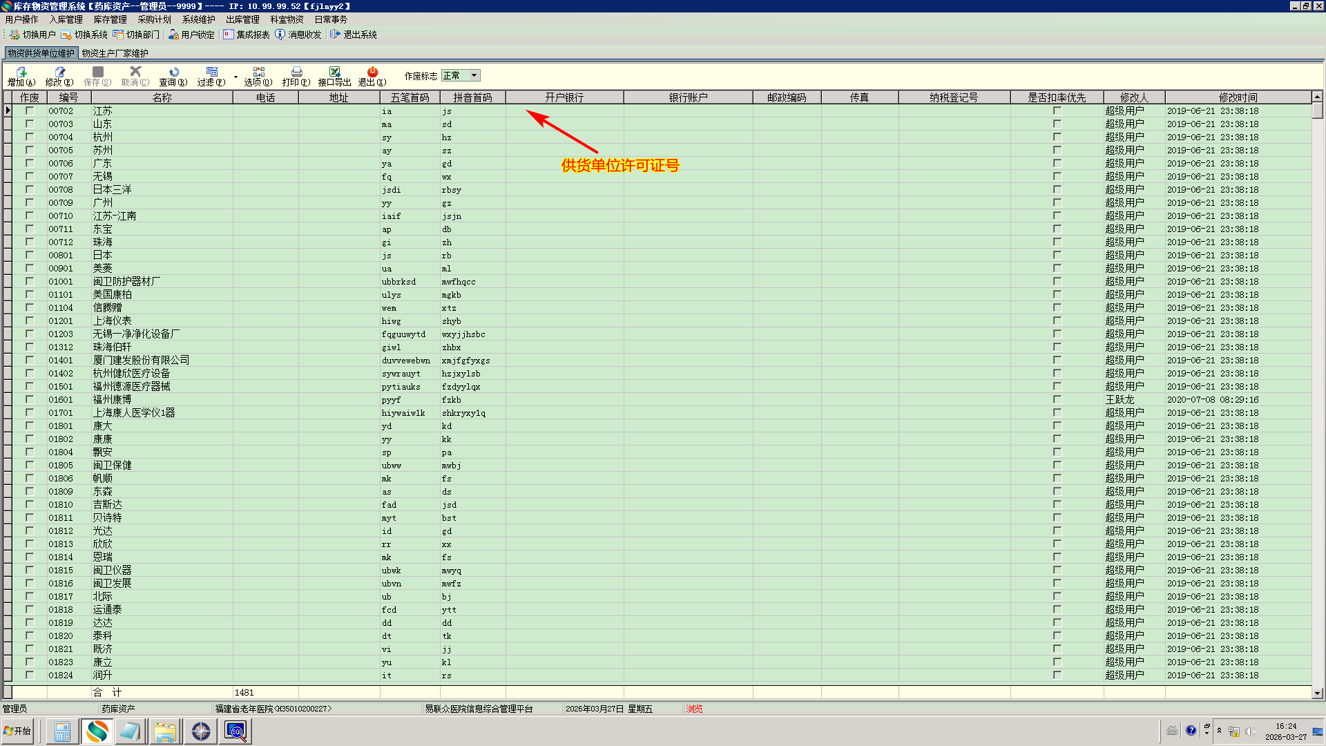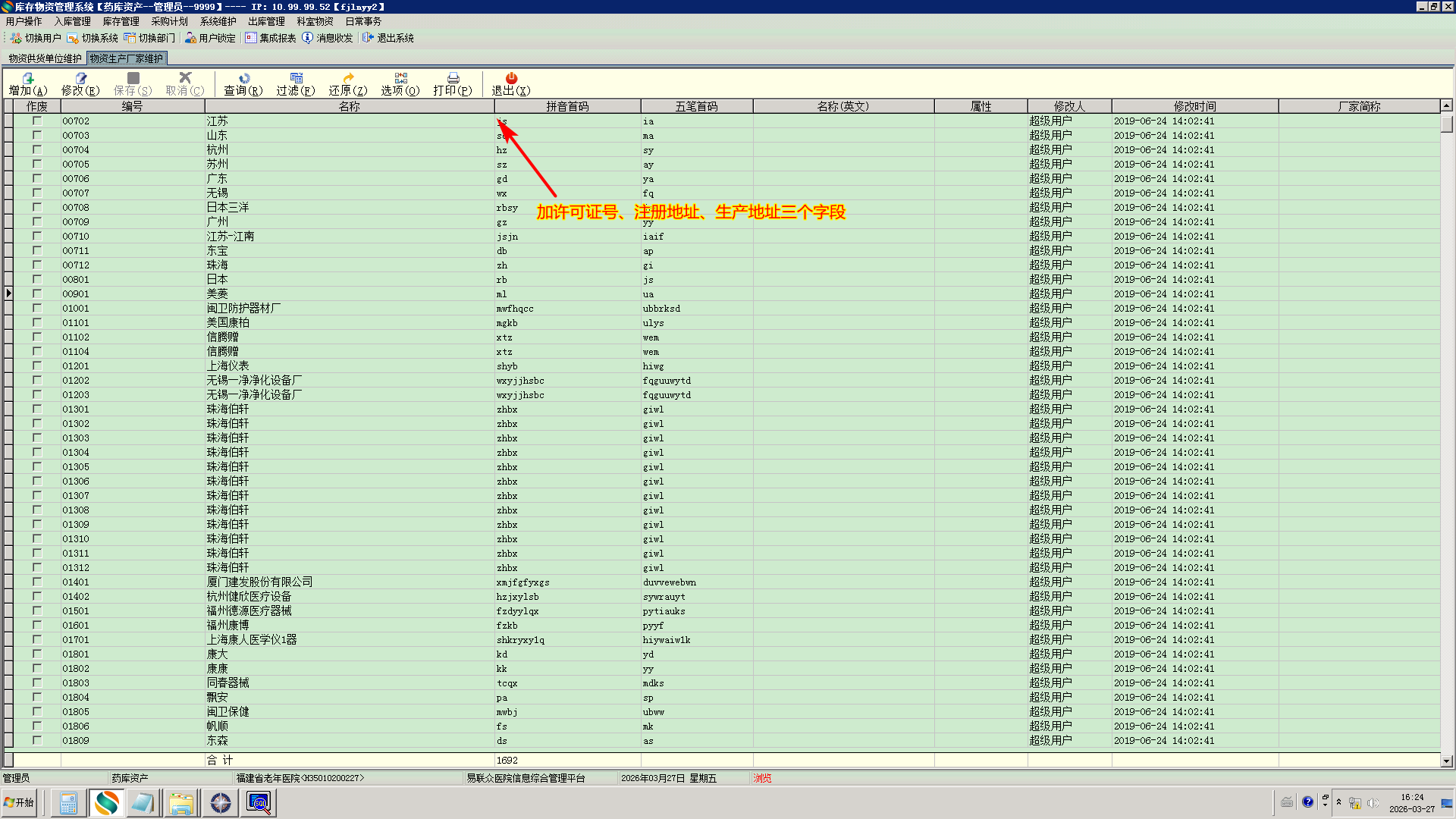 2026/3/27 17:30 244736 福建省老年医院--20260327--库存物资---生产厂家加许可证号字段.doc