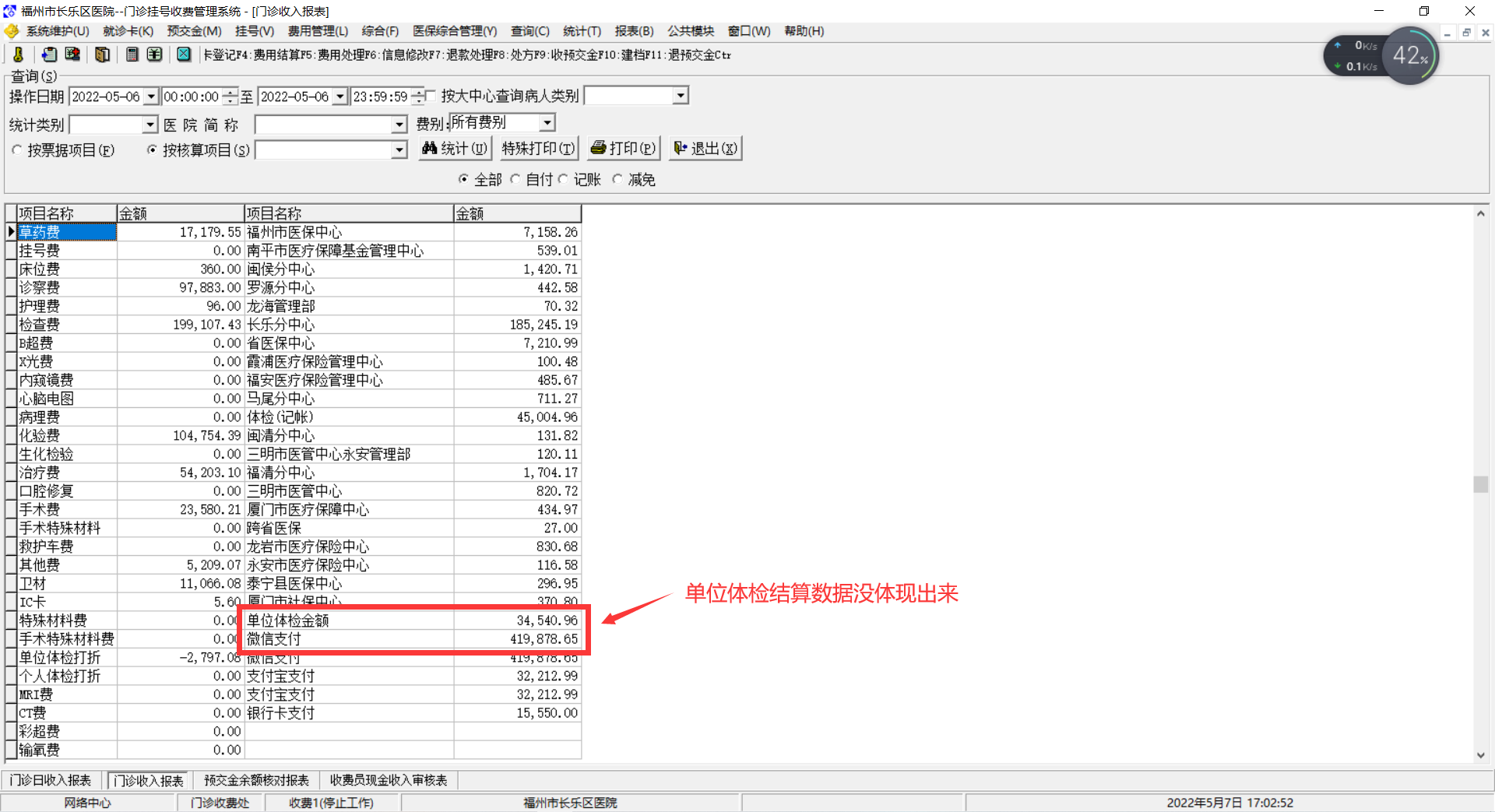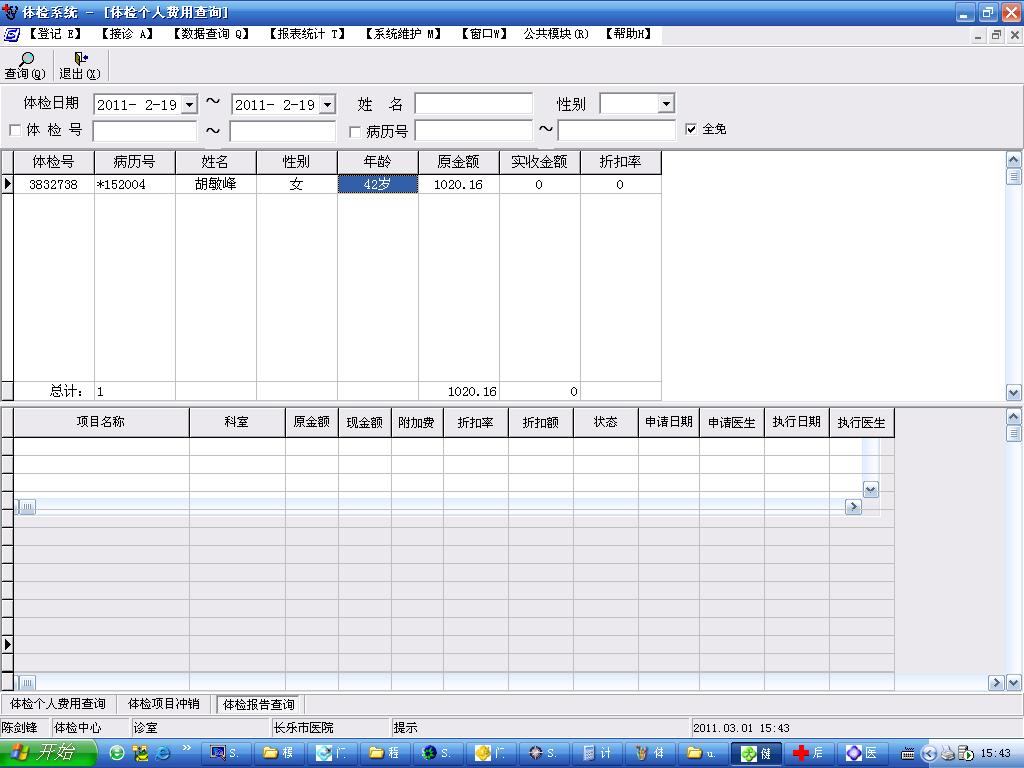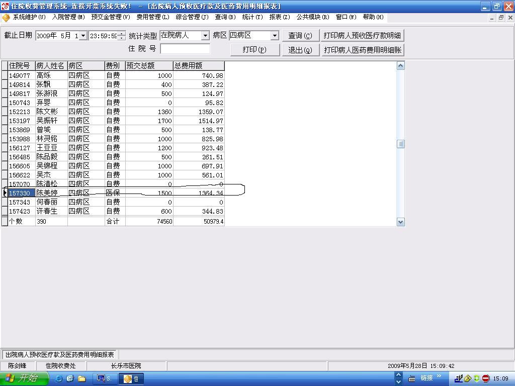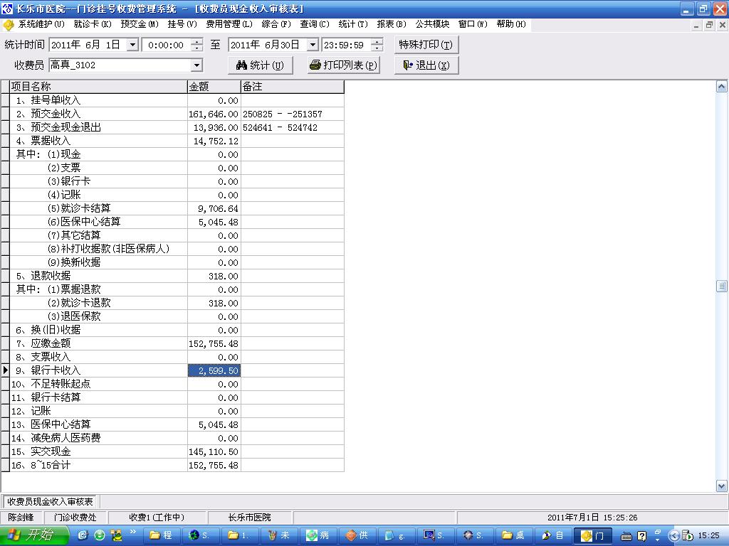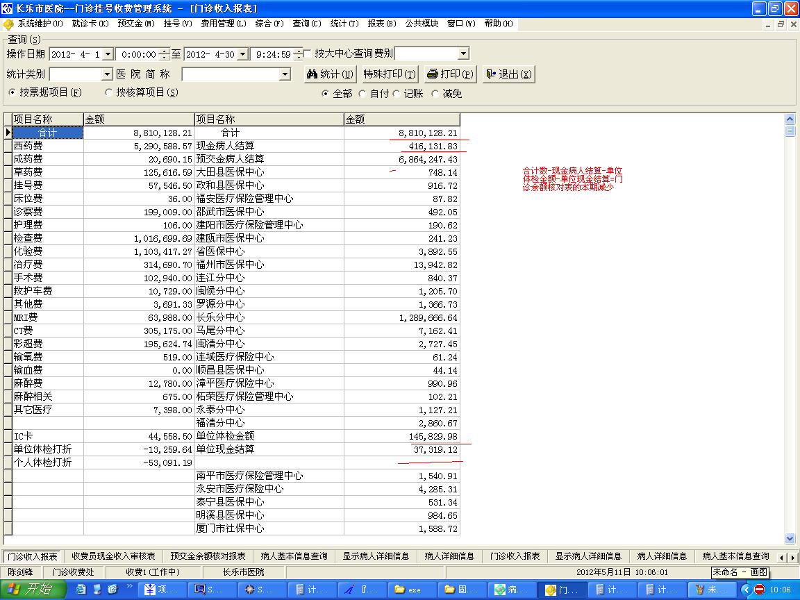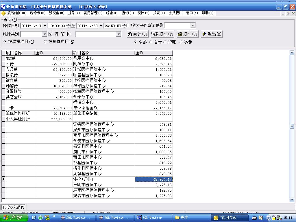 2011/5/3 15:19 149345 门诊收入报表中有体检记帐.JPG