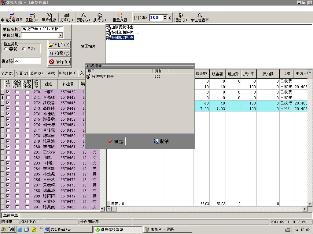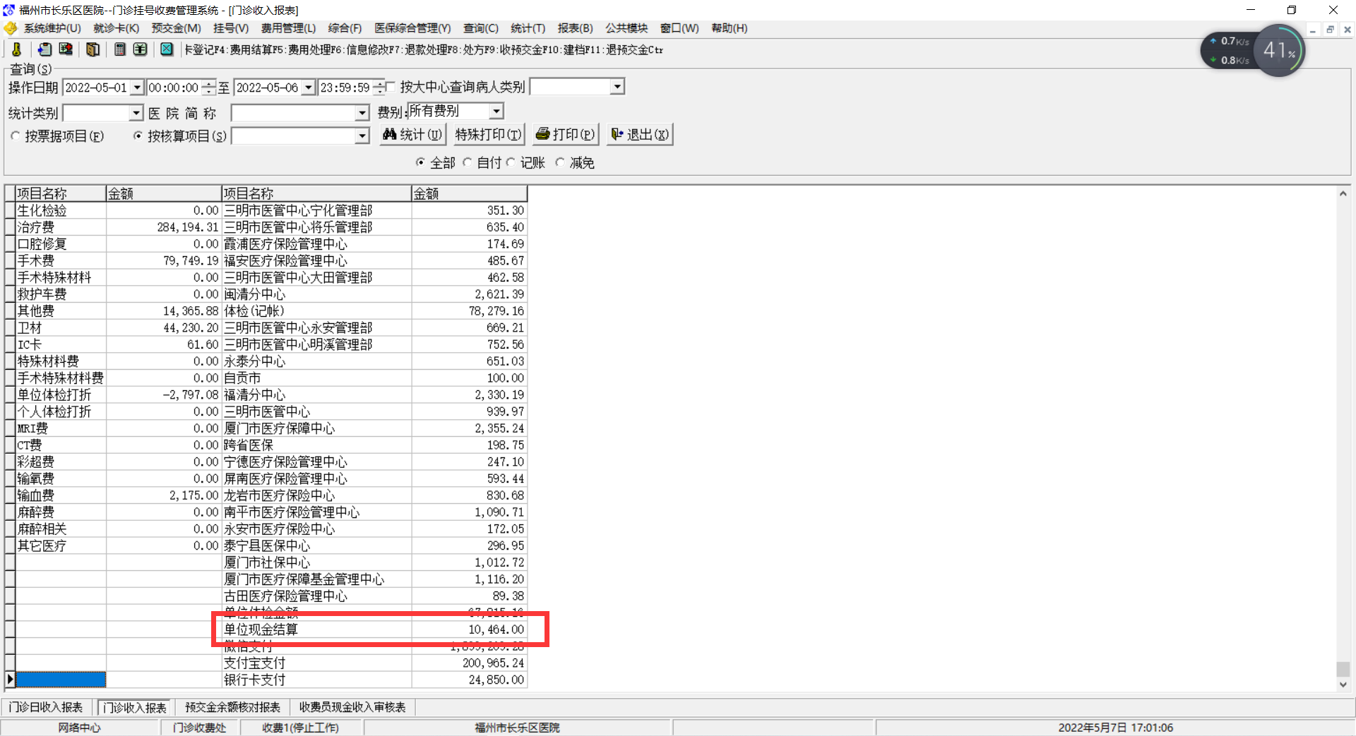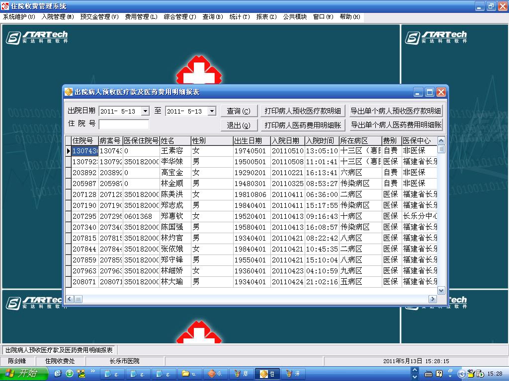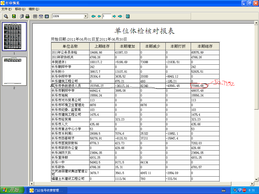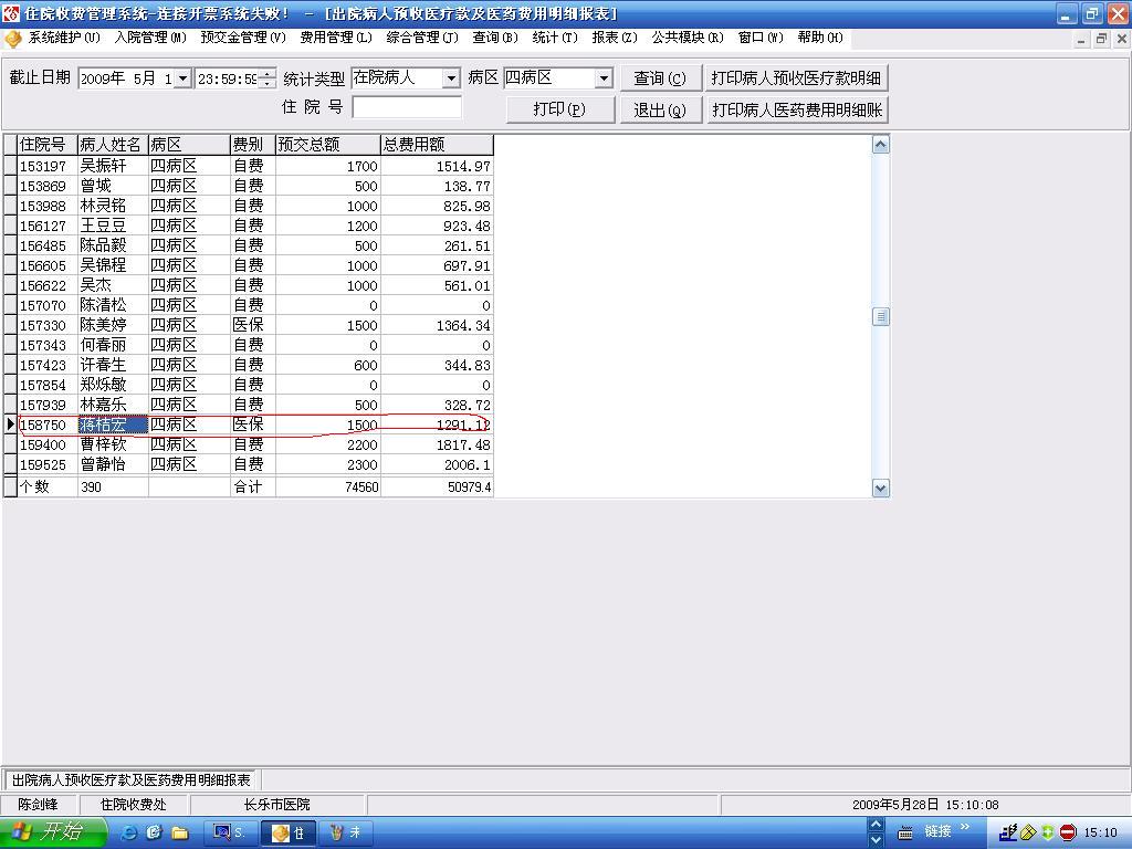 2011/5/3 15:19 149345 门诊收入报表中有体检记帐.JPG