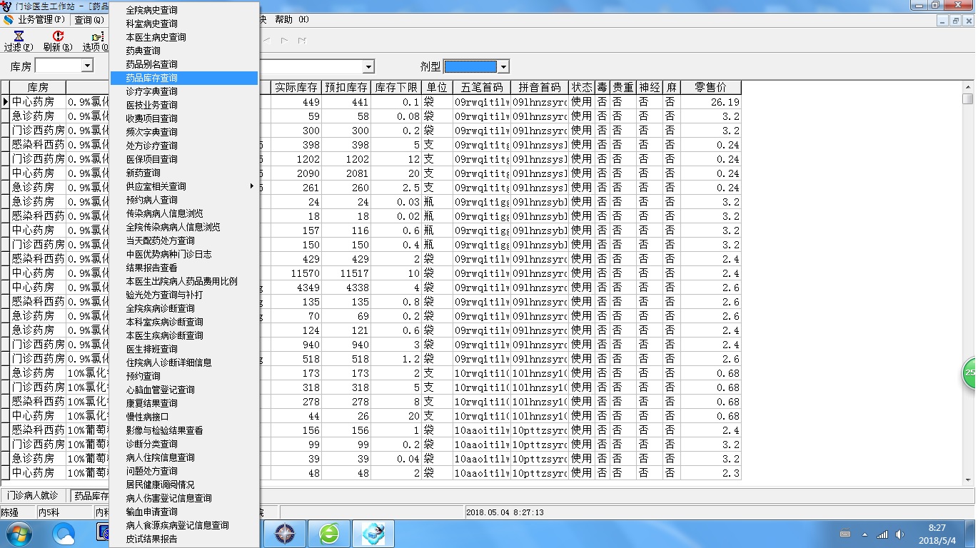 2018/5/4 8:27 437874 门诊医生工作站药品库存查询.jpg