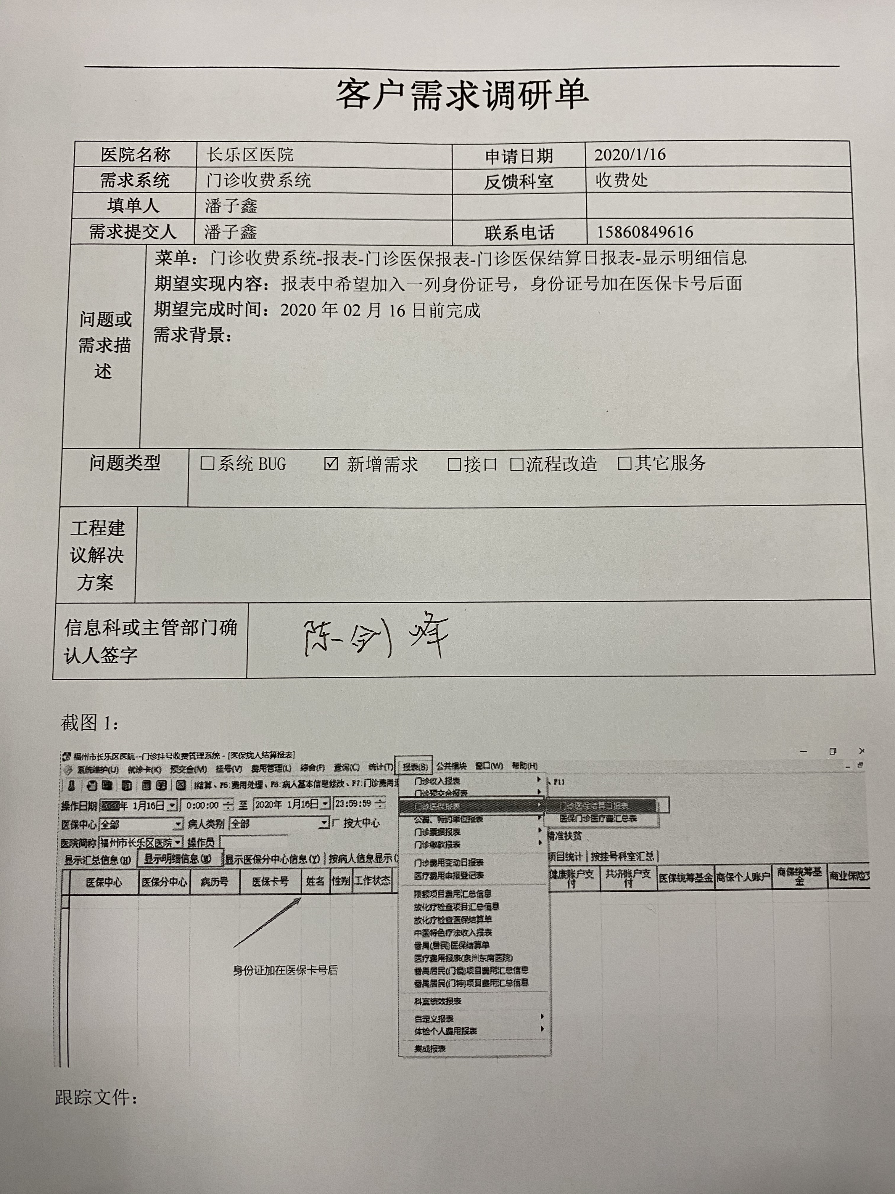 2020/3/17 15:45 52736 需求系统:客户需求调研单--门诊,住院收费系统.doc