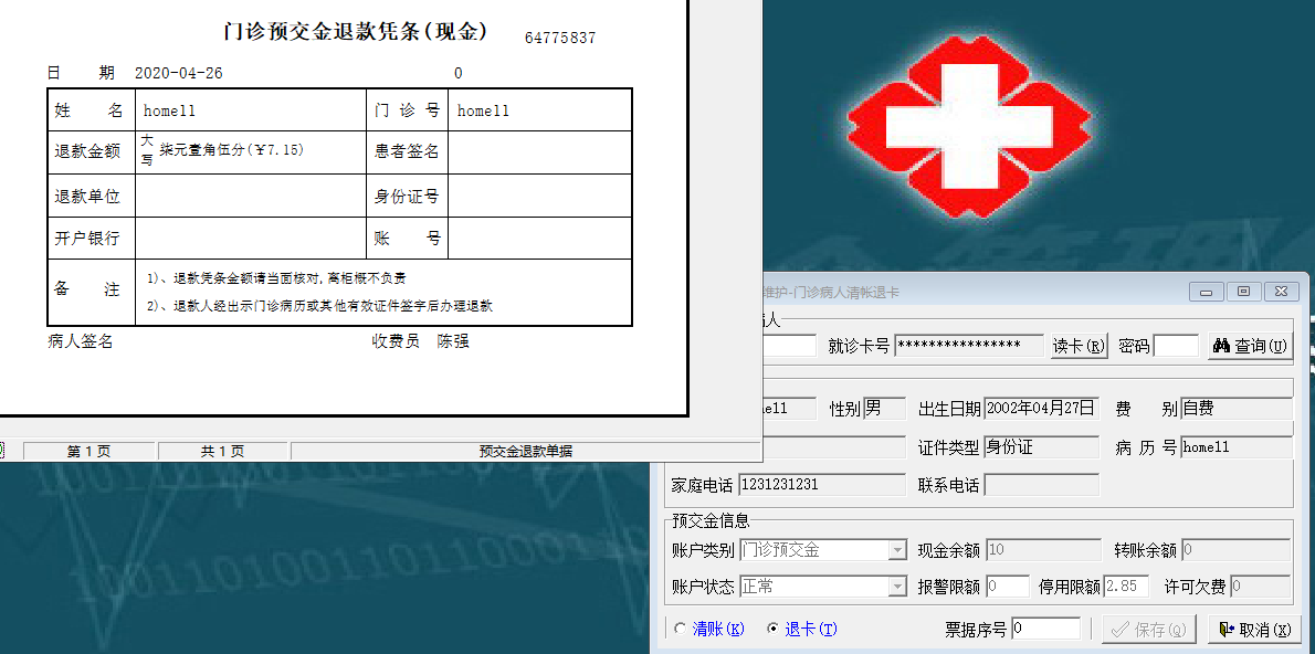 2020/4/26 11:11 154906 需求系统:客户需求调研单-门诊病人清账退卡.docx