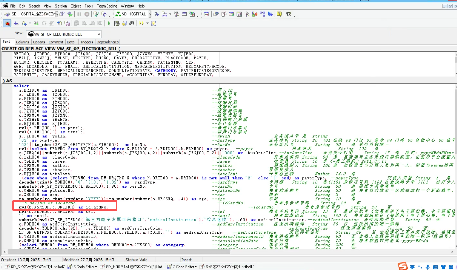 2025/3/18 10:07 2907 修改后视图vw_ys13_brxxb0.txt