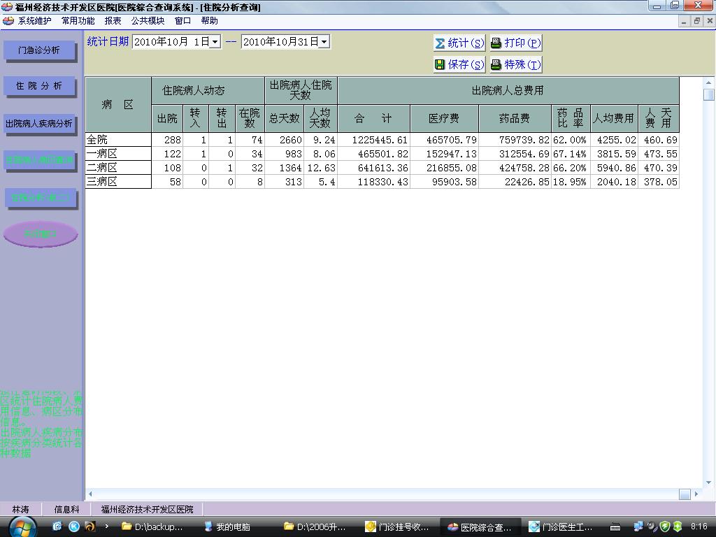 2010/9/7 16:18 10745 门诊医疗工作情况分析表.SQL